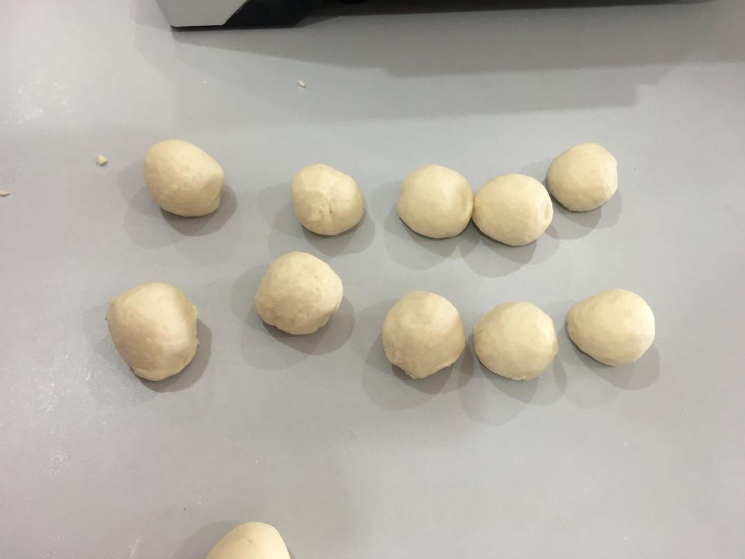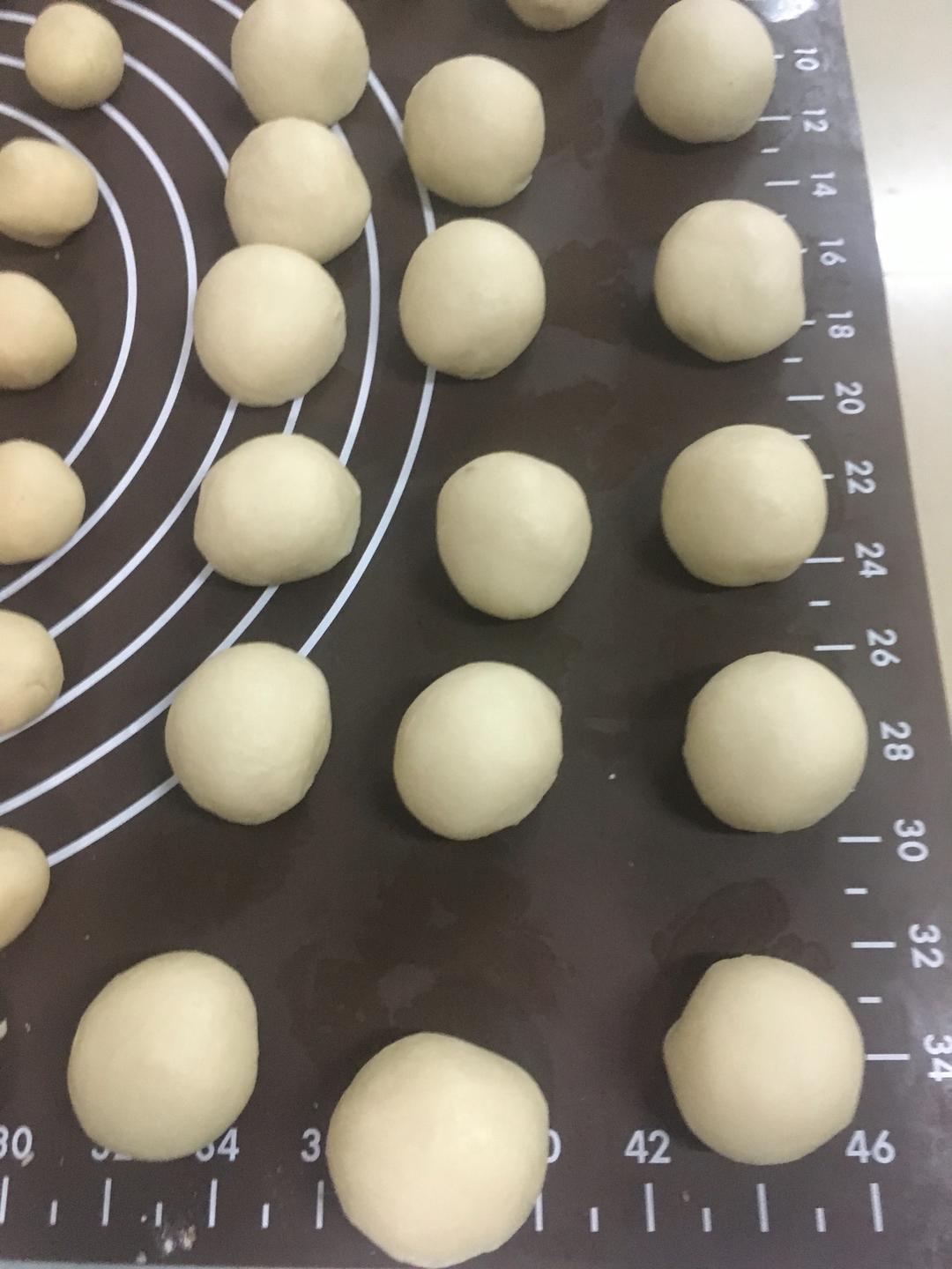 水油皮部分混合匀 揉成光滑面团 分成十分 搓圆