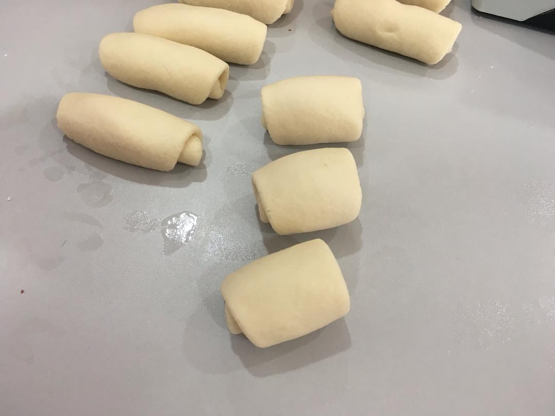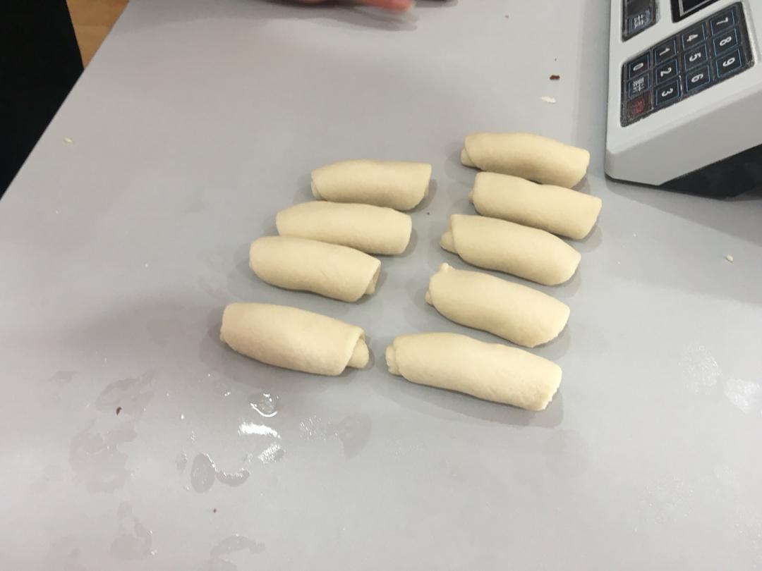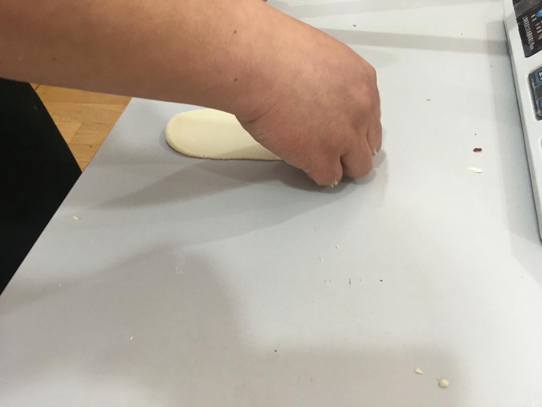 再压扁 再一次擀成牛舌状 卷起