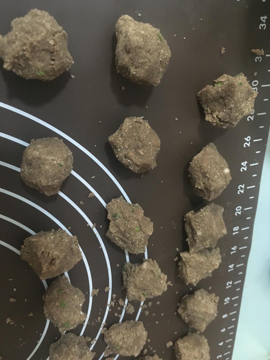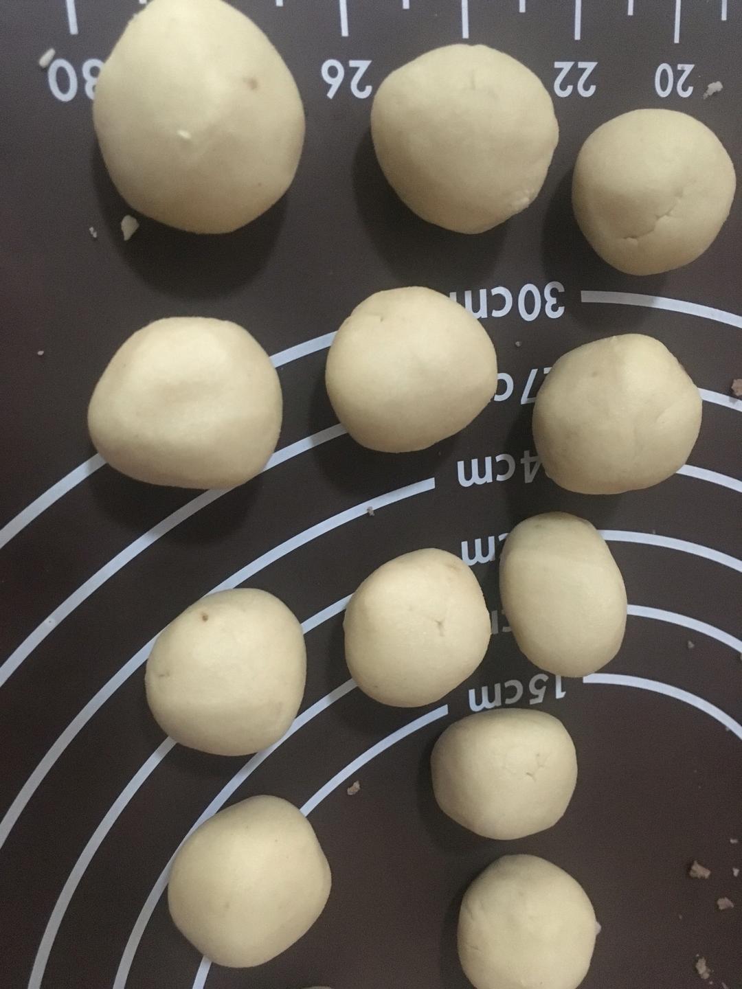 把馅料部分全部和匀 分成十分 并捏成小球 捏的不太圆也不要紧哈