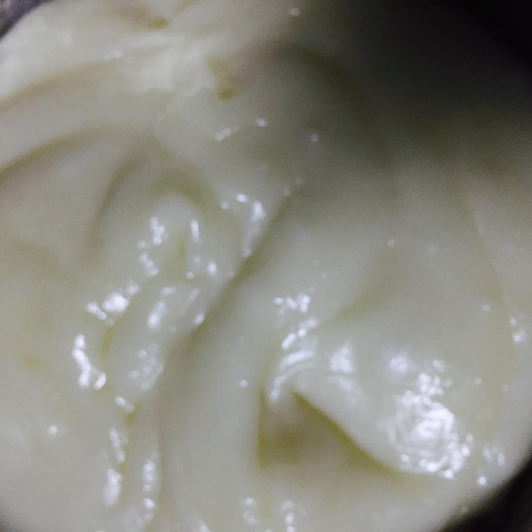 发酵的时候制作麻薯,将分类所有材料混合加入牛奶,放入容器隔水蒸30分,表面凝固没有液体即口,取出放凉,加入黄油揉匀,放入保鲜盒备用