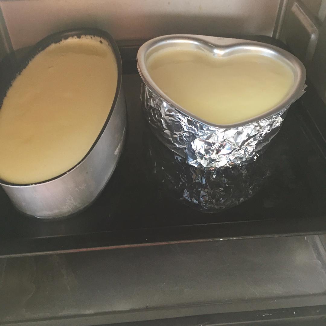 水浴法,烤盘中放水。 预热,180度3层10分钟,180度2层10分钟,145度3层40分钟。 待冷却脱模,放冰箱冷藏4小时。 试试吧~