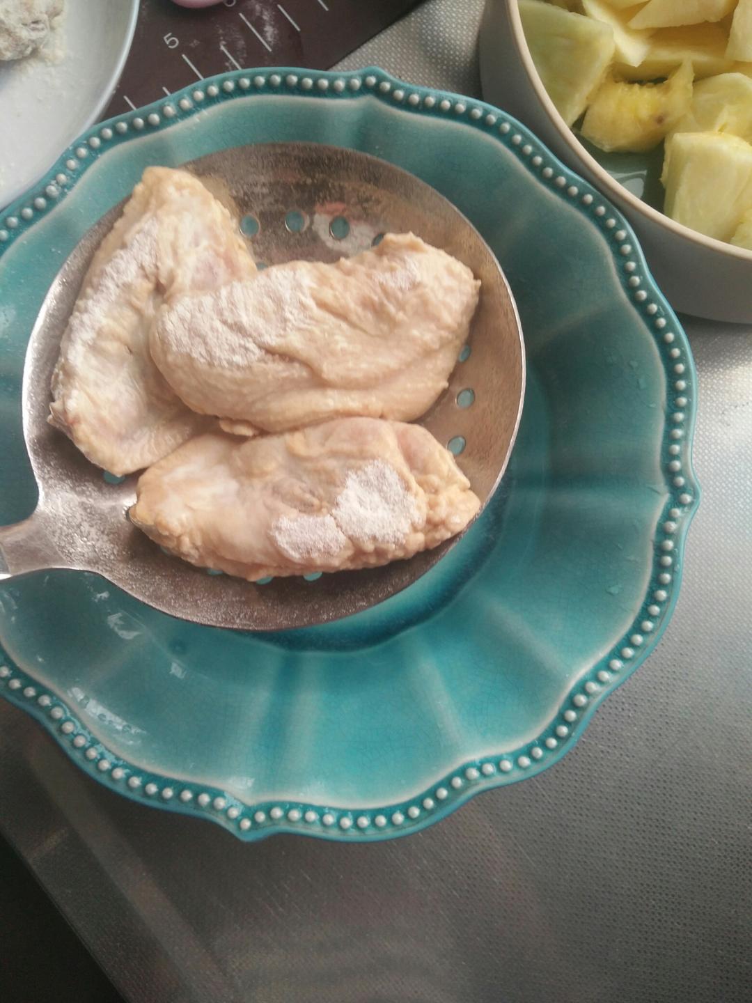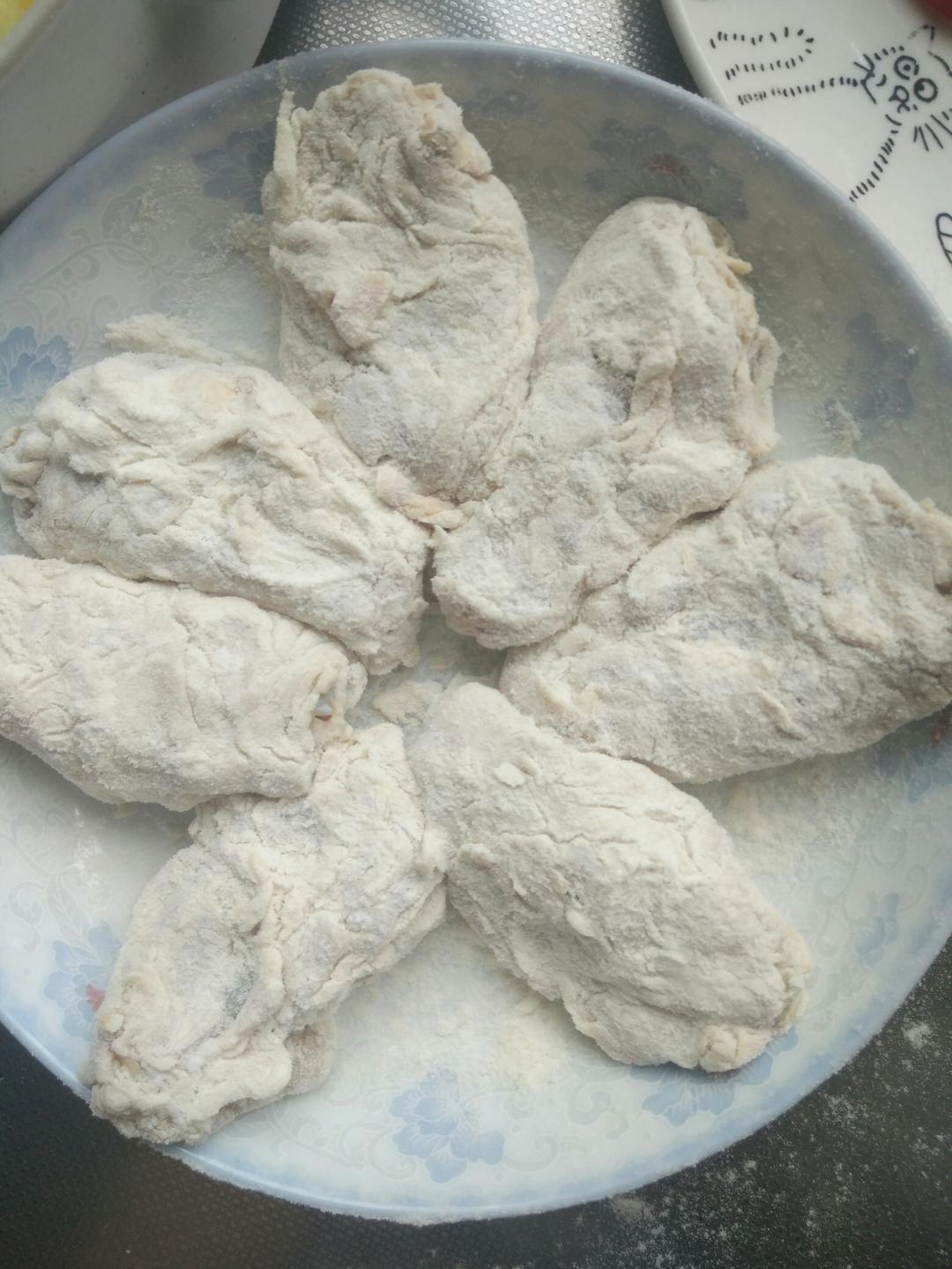 裹完两遍面粉的鸡翅!