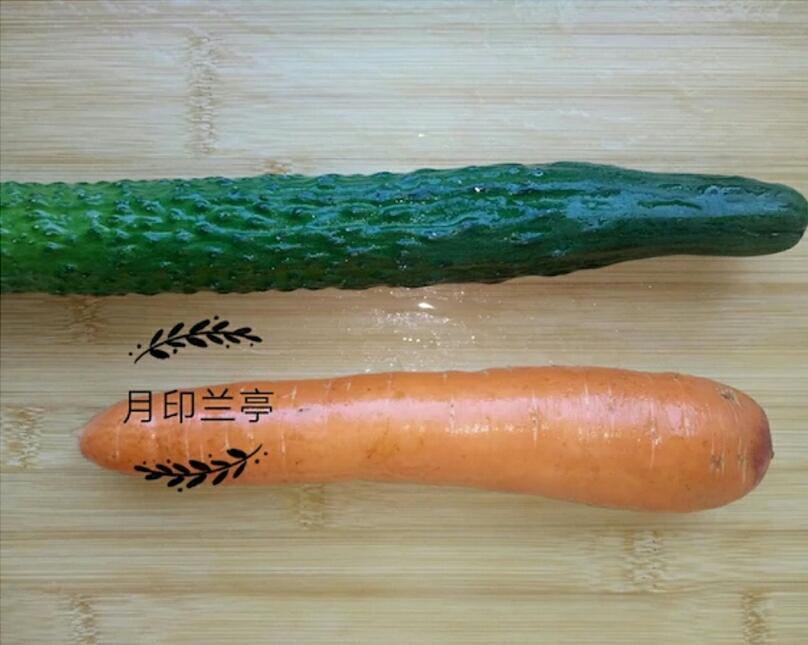 2、把红萝卜与黄瓜清洗干净备用。