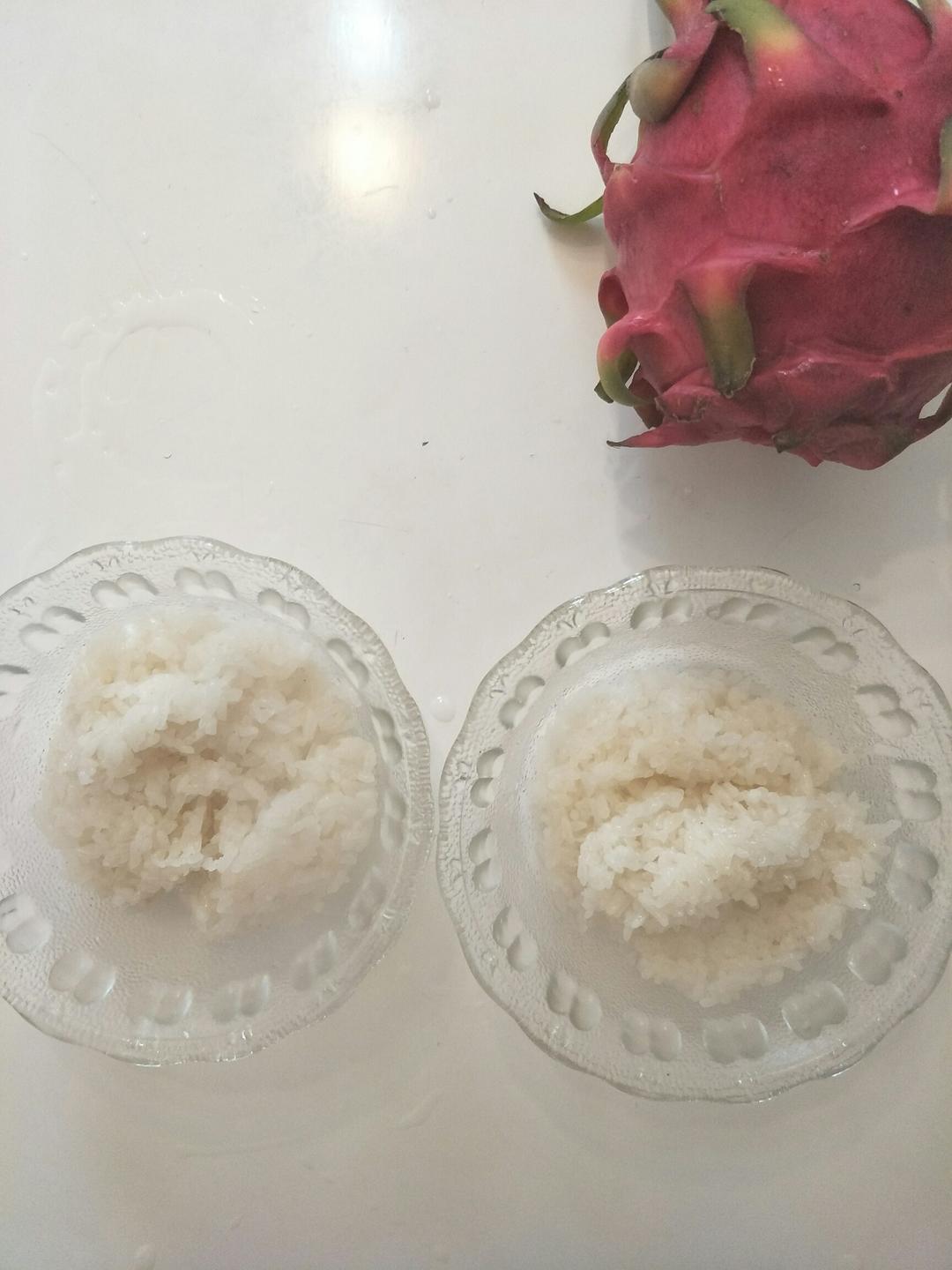 红心火龙果如图腻到一碗饭里,搅拌均匀