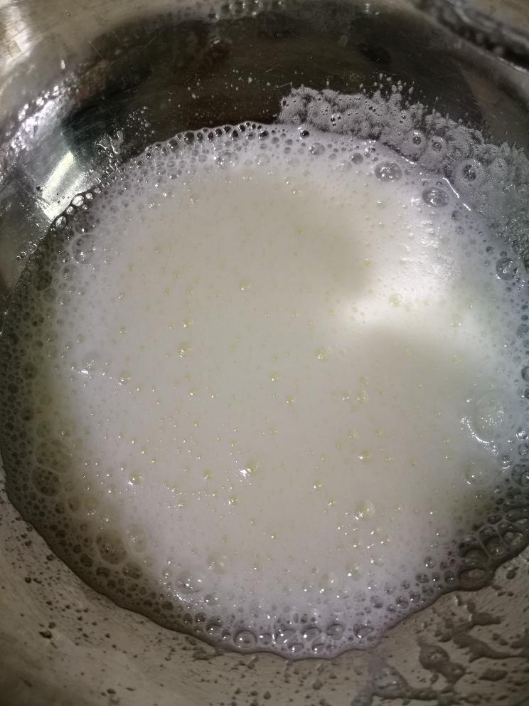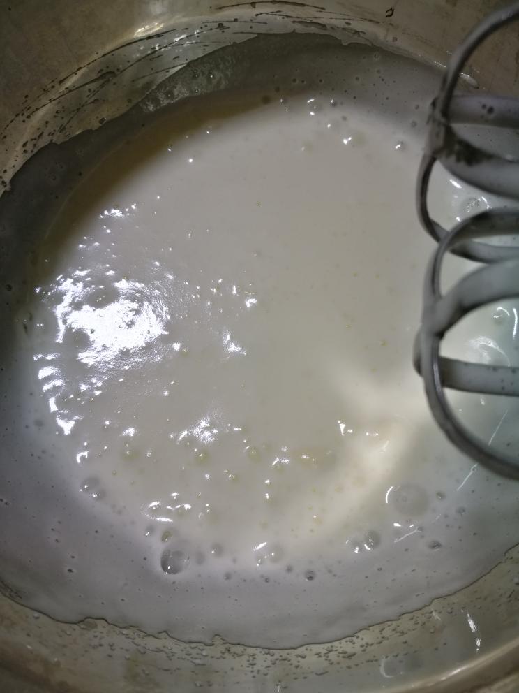 牛奶和玉米油充分混合,再加入蛋黄,用手动打蛋器搅拌均匀