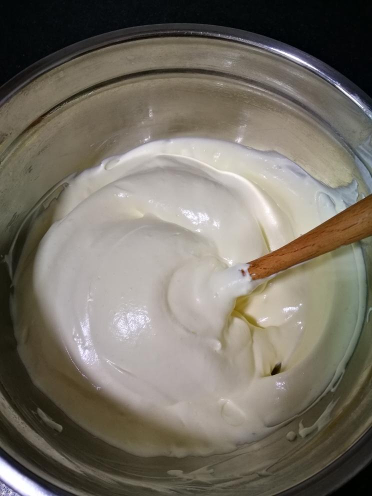 取1/3蛋白霜与蛋黄面糊混合