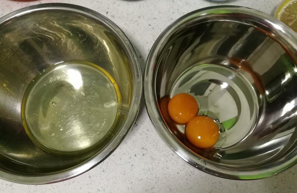蛋白蛋黄分离,分别放入无油无水的盆里。