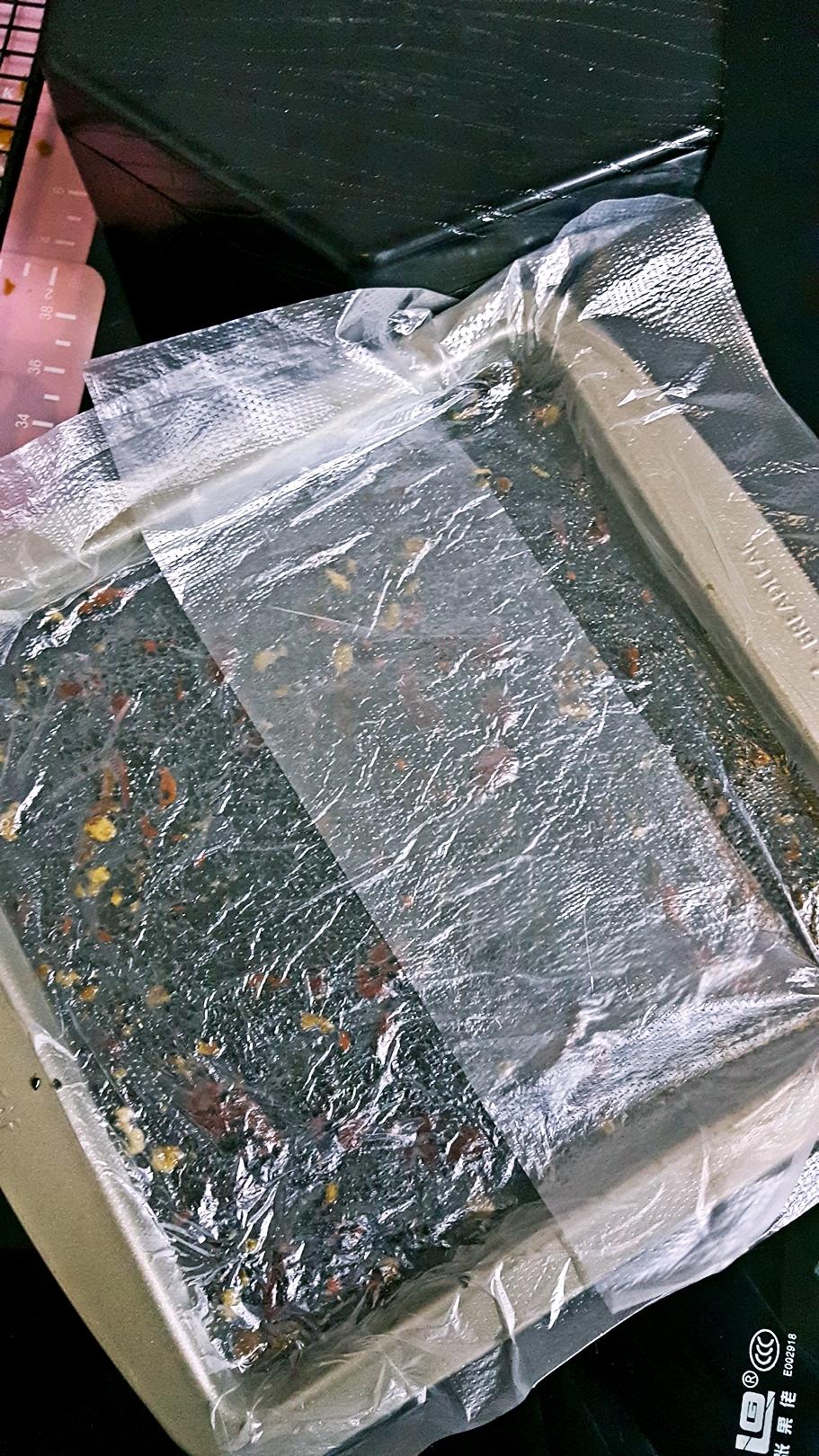 我们没有暖气。。。。整好了铺上保鲜膜或袋,压着糕的表面铺,隔绝空气那种。然后室温放置24小时就能冷却成型。🖤你们有暖气的胖友,讨厌。记得搁冰箱。🖤这个过程让阿胶糕慢慢降温可以去除阿胶所含火毒,滋补而不上火。