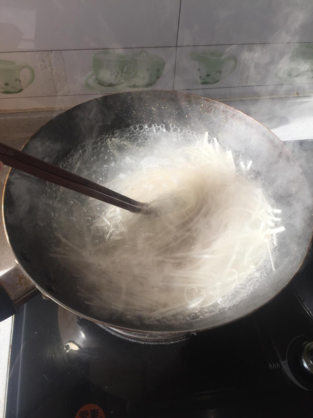 开始煮面。