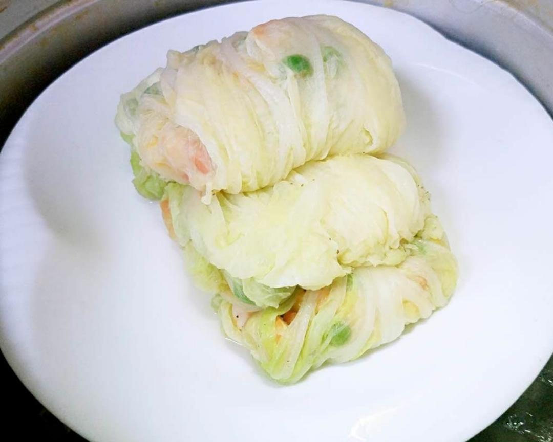 每一个都卷好后放入盘中,等蒸锅上汽后,放进去中火蒸10分钟左右即可。
