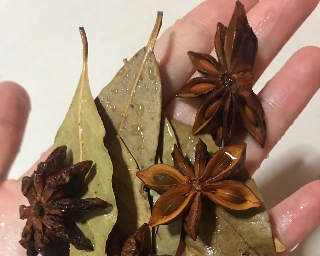 起锅小火放入香料至香叶变色