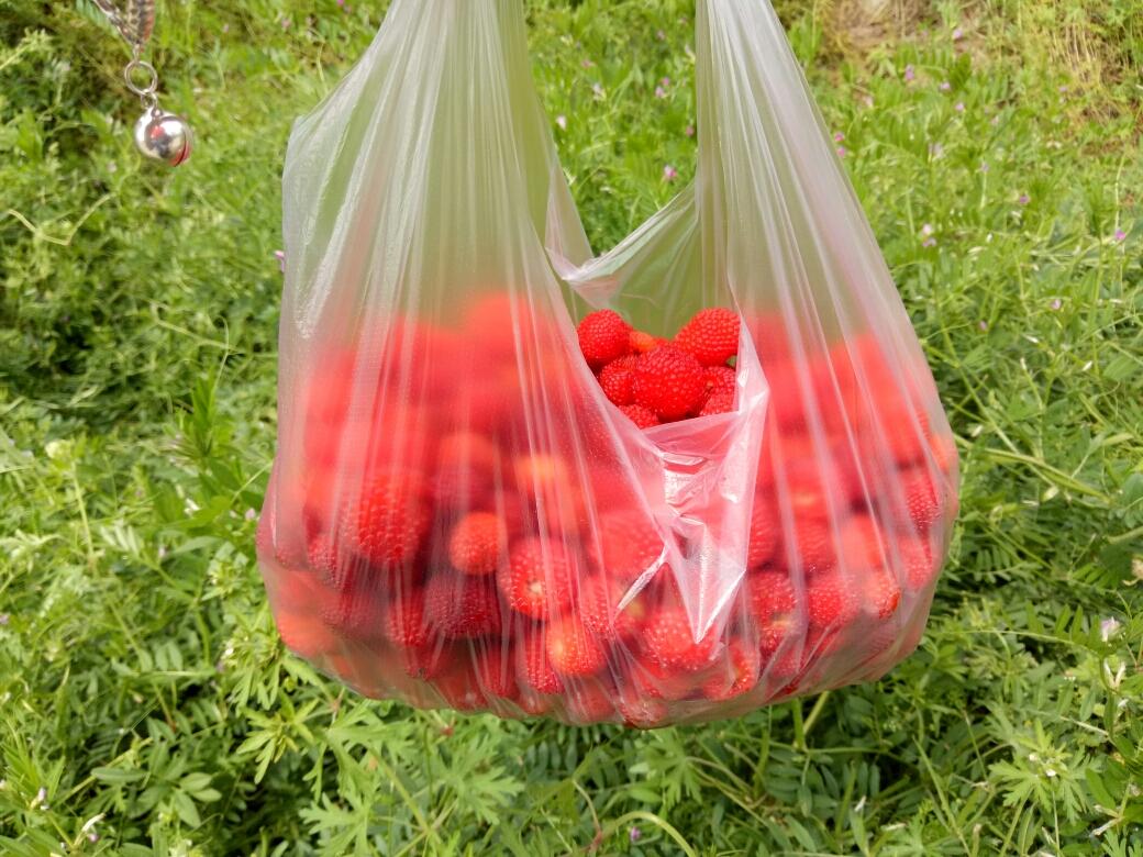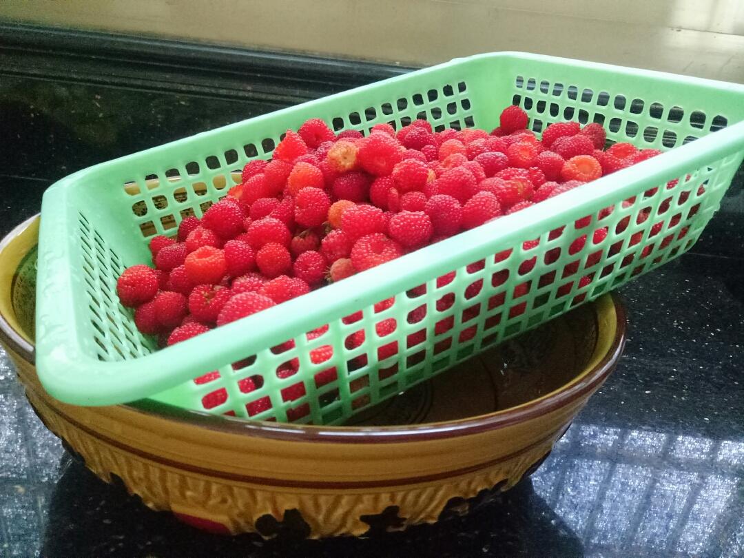 分享一张我和爸妈三人采的野生树莓【有知道真实名字的可以告诉我哈】,反正采完这些,三个人的手臂被刺划了好几口。