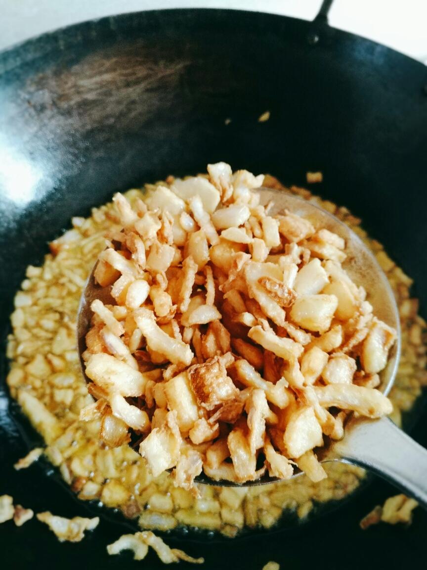 先制作洋葱酥,这种东西可以一次性多做一点,用保鲜袋密封起来,放进冰箱急冻间。平时吃清汤面的时候撒一点好吃的不得了,卤肉饭更是必不可少。 洋葱切小条,沾上适量面粉。