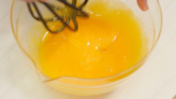 两个蛋黄加糖,用手动打蛋器搅至砂糖完全溶解。
