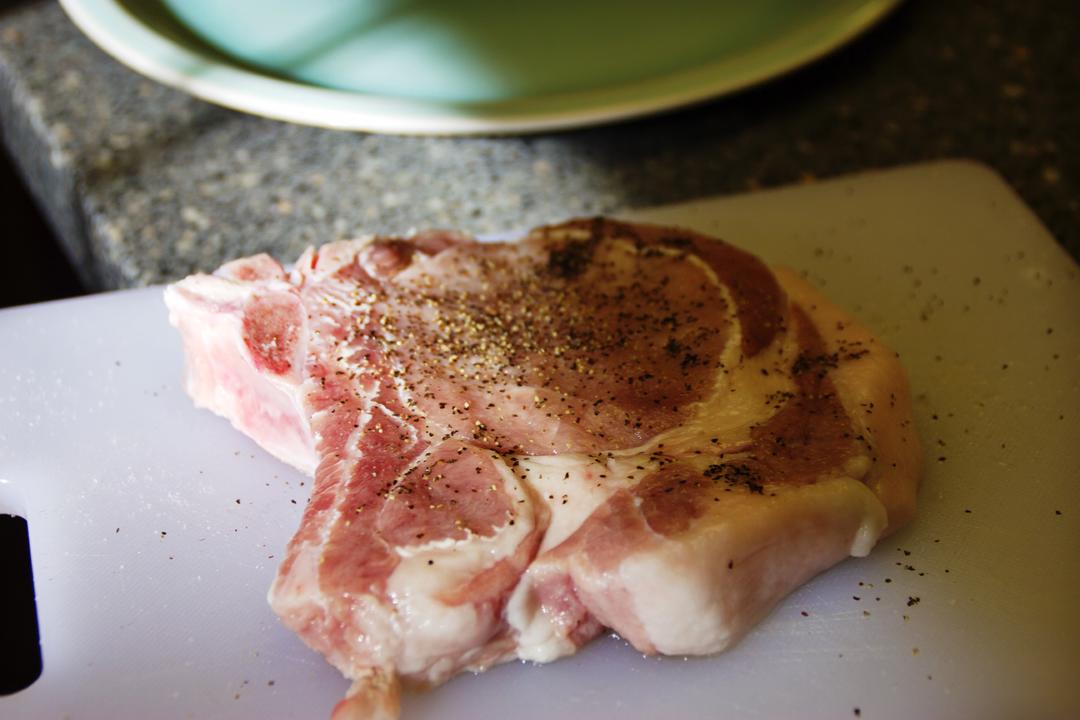 1. 大排取出解冻。 2. 在大排上面撒上少许的盐和黑胡椒调味(就像煎牛排但稍微少一点) 3. 静置10mins,让肉入味 4. 葱切成小段,生姜切5片 Tips: 大排最好选那些稍微肥一点的,不然做出来的红烧大排会比较的干柴。可以用刀背敲一下大排表面,这样会比较的松软。