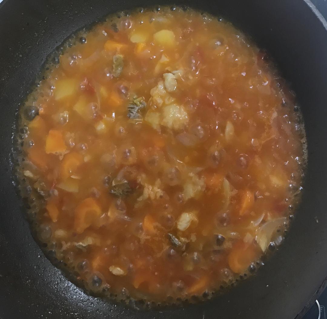 记得不停翻,因为土豆可能会粘底,直到煮到土豆胡萝卜等都软烂,汤汁浓浓的(不要煮到汤没有,我喜欢汤大大的,所以之前一定要加很多水!)