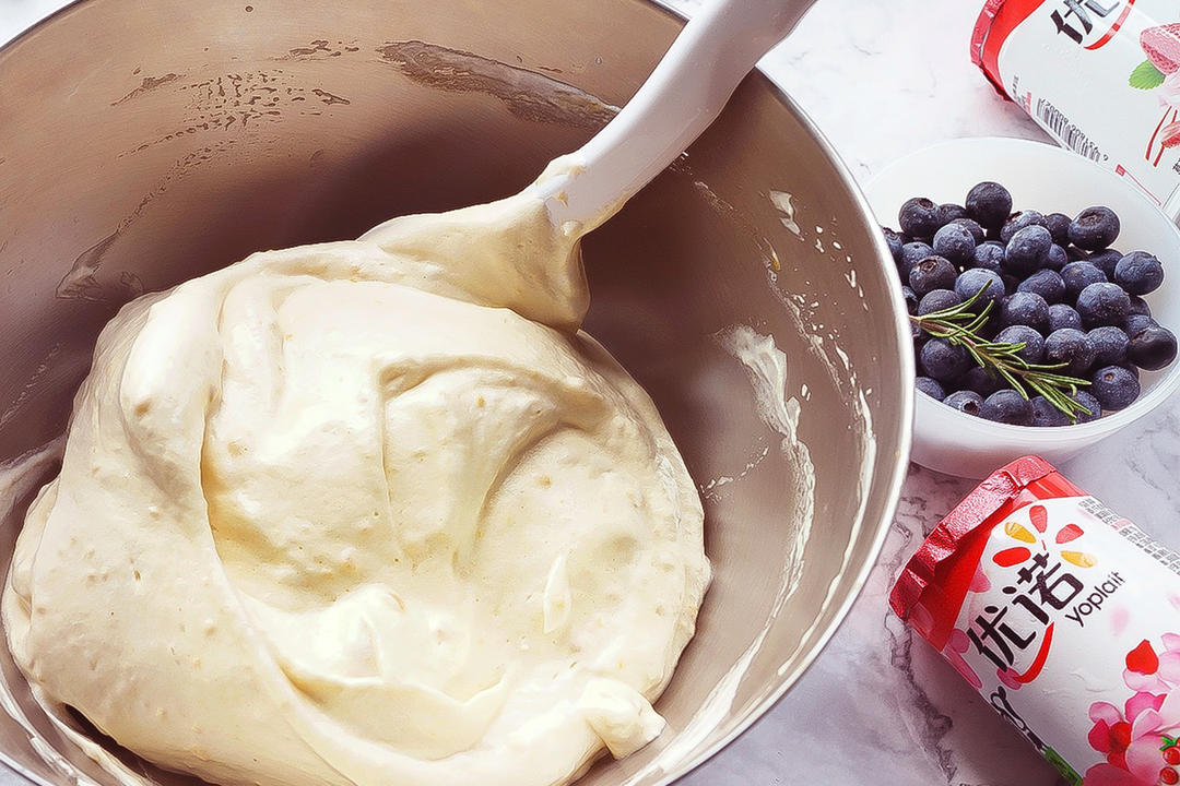 也可以用优诺蓝莓味或者草莓味的酸奶,做出来分别就是对应风味的松饼哦;
