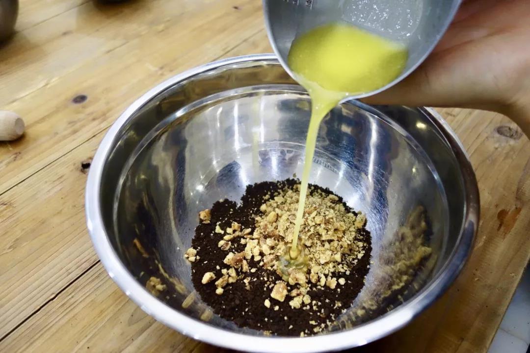 将融化黄油翻拌拌匀