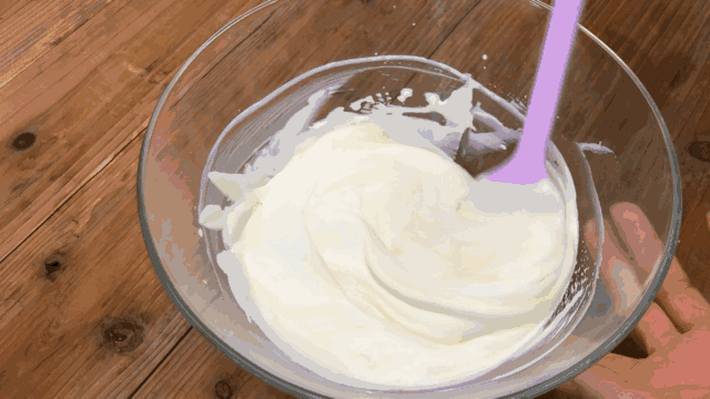 淡奶油打至5分发,分次和冷却至室温的奶酪糊拌匀,此为淡奶油奶酪糊