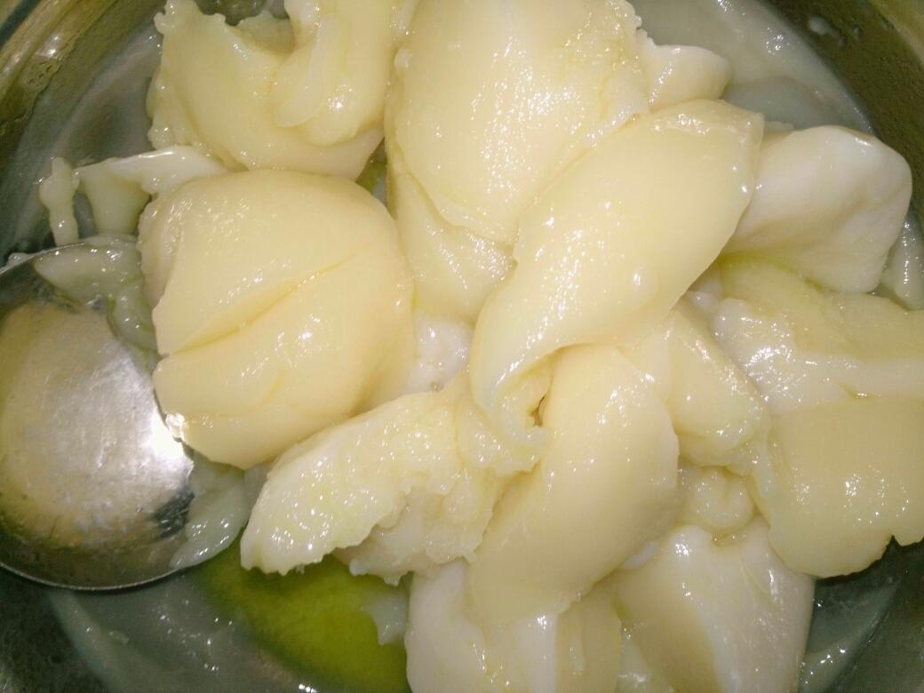 太烫了,我用打稀饭的勺子挖一挖,直到黄油全部化了,放一会温度降一下。