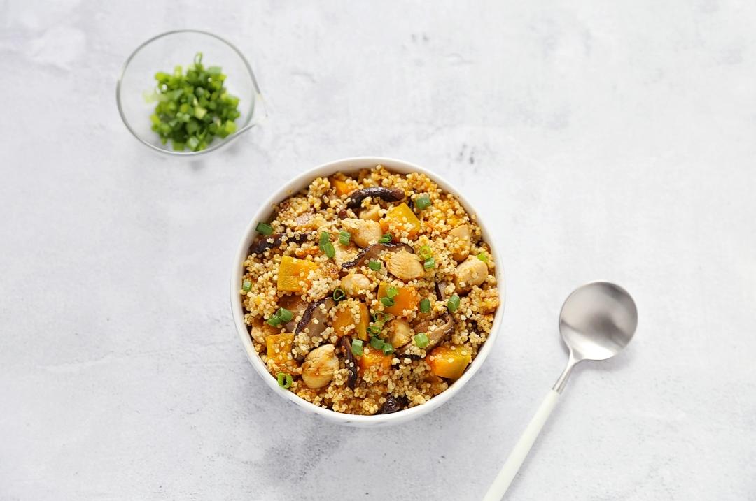 1、清洗小米时,不要用手搓,用筷子在清水里搅拌几下杂质就会漂在水面。 2、煮饭时因南瓜会出水,水量要略少于平时用量。 3、调味品用量请根据个人习惯调整。 专业营养师杨洪美点评:相信很多妈妈最头疼的事情就是睡不够、没精神、好疲惫。熬夜、压力大都会导致维生素b族流失比较多,进而需求量也会增加,所以妈妈们要增加b族维生素的摄入。藜麦是全营养食物,富含维生素b族,小米也是富含维生素b族的食物,南瓜的维生素b族也是蛮丰富的。藜麦浸泡两小时后,将藜麦与浸泡的水一起倒入电饭煲,因为有一些植物化学物质和维生素b族是水溶性营养素,浸泡的时候会有一部分营养物质进入到水里。做成煲饭可以使营养损失减少,还可以起到营养素互补的作用。因为维生素b族全是水溶性营养素,所以要做到每天都要摄入才能精力满满不疲惫哦。