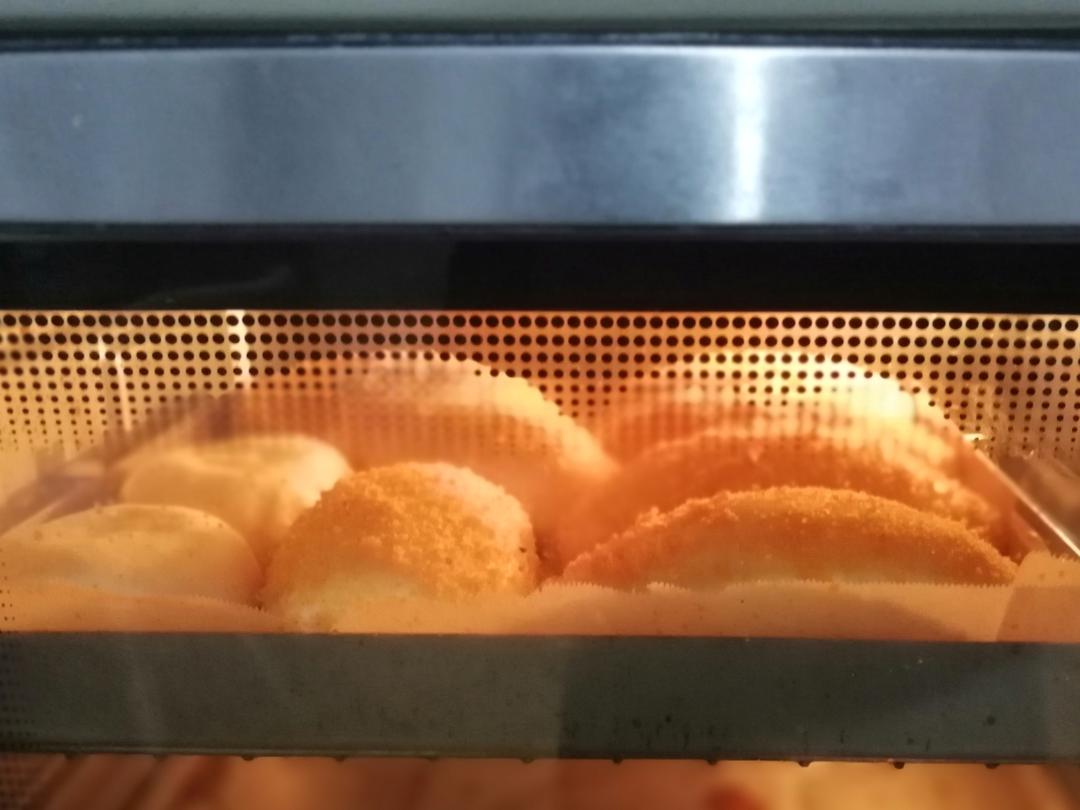 面包收口向下,二次发酵最好是32~35℃,湿度75-85,发酵20分钟 烤箱预热200℃