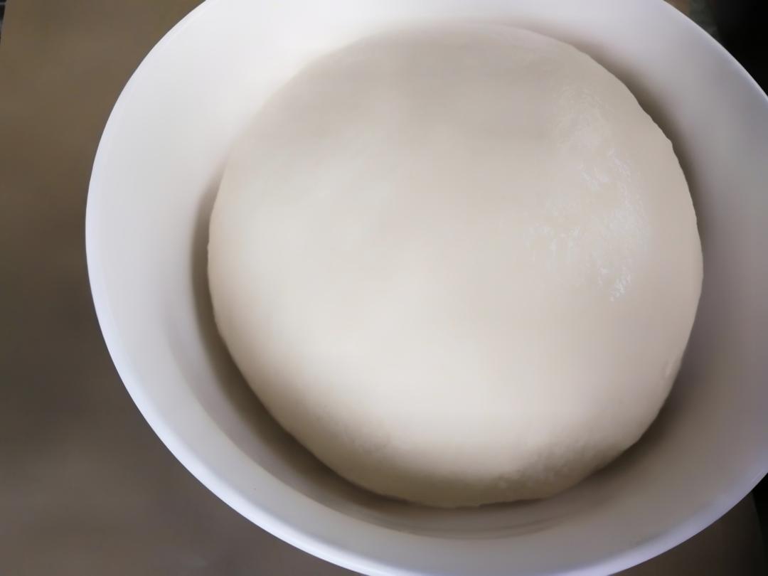然后就可以从你第一个分出来的面团开始,擀圆排气