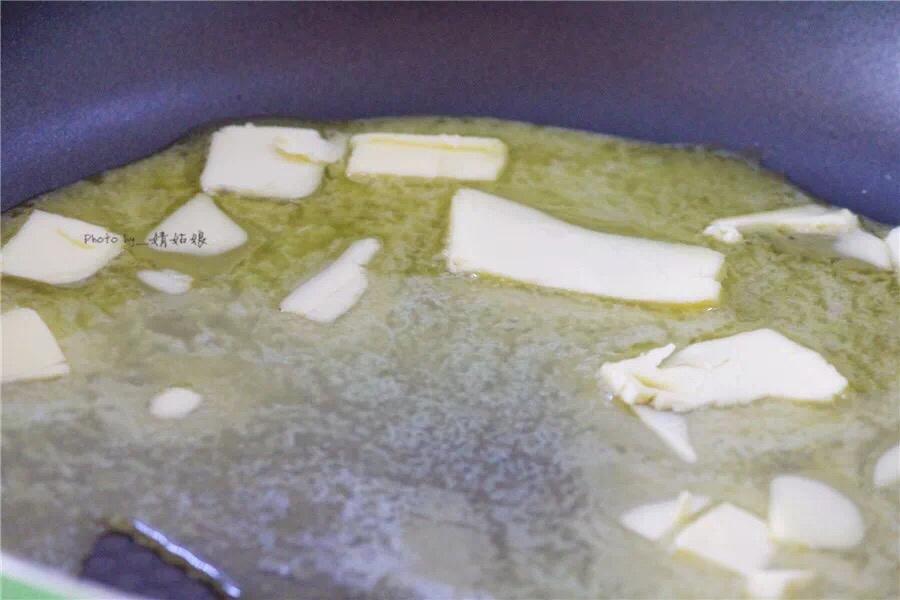 黄油放入不粘锅中,小火加热至融化。