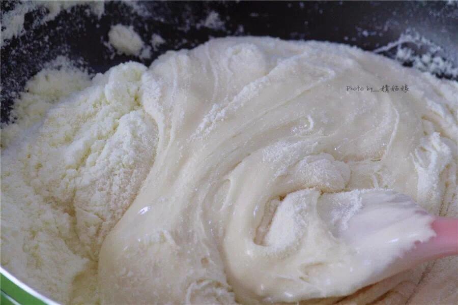 倒入奶粉,利用余温,翻拌均匀。