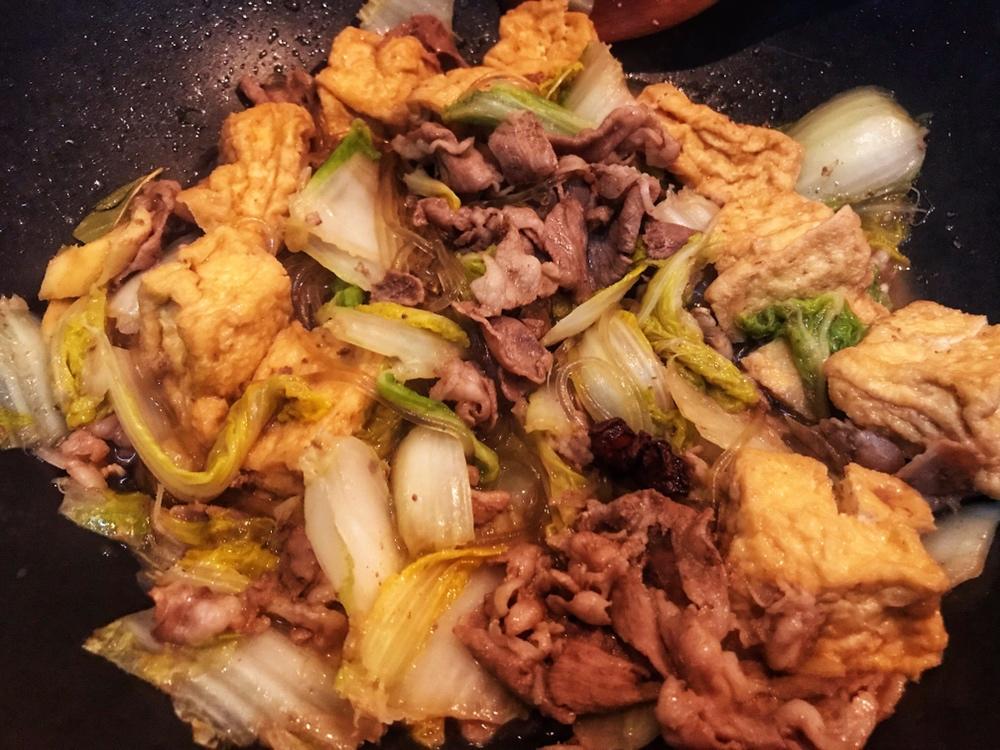 最后根据自己的口味适量放食盐调味,再翻炒几下即可出锅。大功告成啦!香喷喷的羊肉豆泡炖粉条,绝对是下饭的佳品!