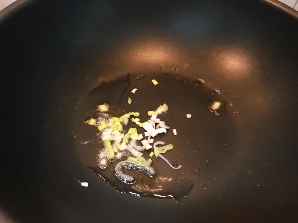 锅热后,倒入少许食用油,放入葱花爆香。