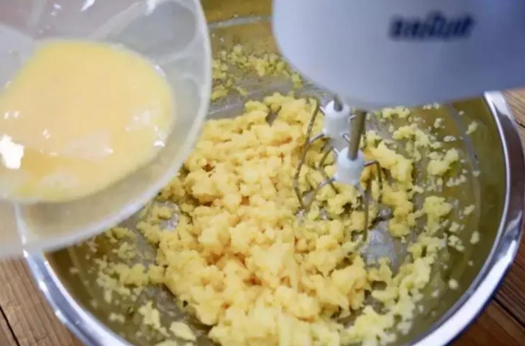 待温度降到60度以下,逐步加入鸡蛋液,每次待面团完全吸收蛋液之后,再加入后续蛋液。