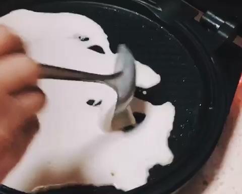 预热电饼铛 刷上一层薄油 像摊煎饼那样舀面糊到电饼铛 转动电饼铛让面糊均匀布满整个电饼铛 盖上盖子等待1-2分钟