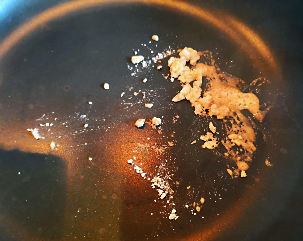 非常重要的一步: 炒油面。 黄油10g,面粉30g,按照1:3的比例,快速翻炒至面粉发黄,黄油裹住面粉,即可加入汤底,增加粘稠度。 继续熬10分钟。