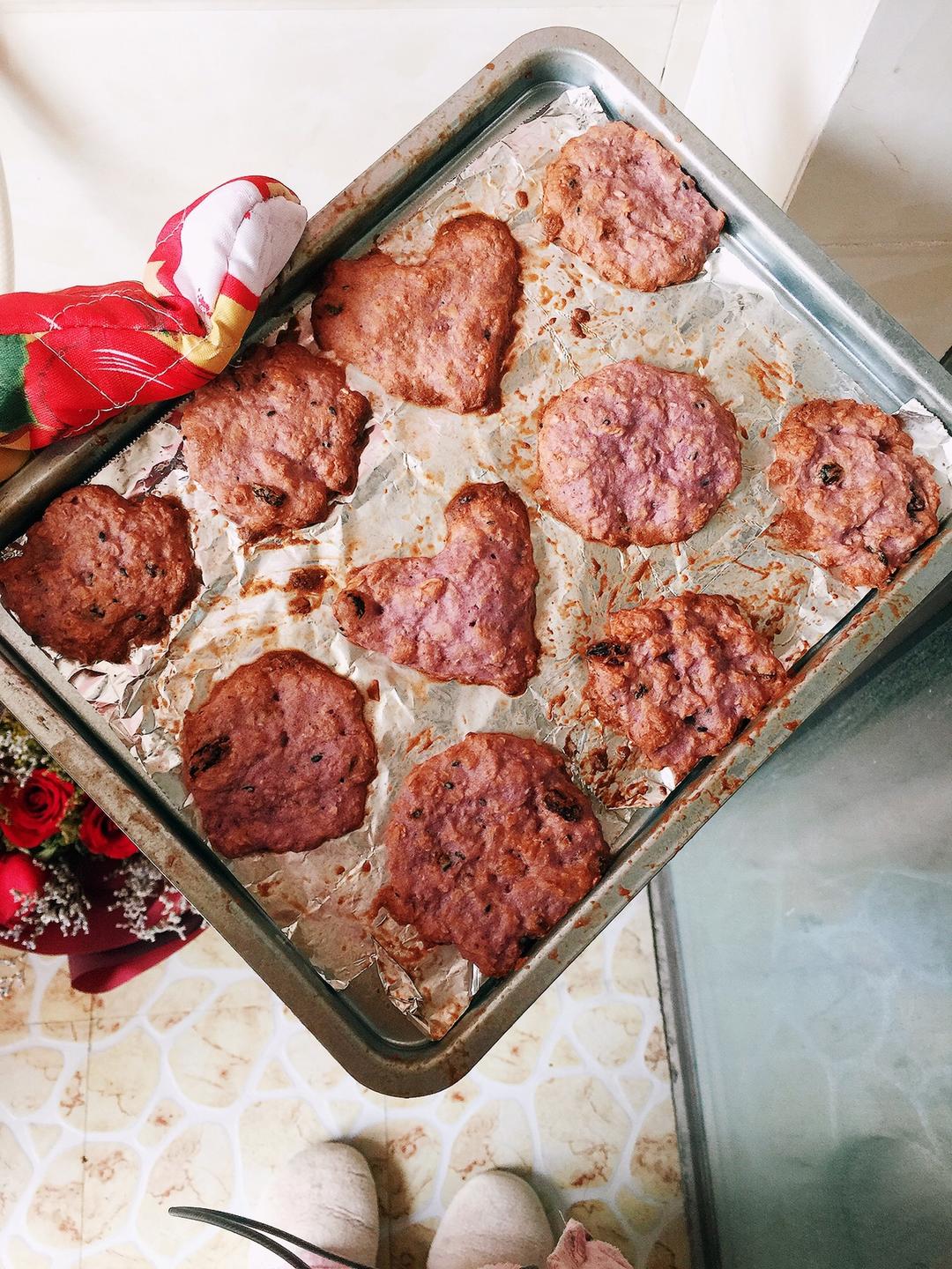这是魔芋紫薯代餐粉做的烤出来的。吃起来还不错。我用180的温度,烤了二十分钟,但是好了之后觉得不太硬,有点软,就又150度的分了两个五分钟烤这样。