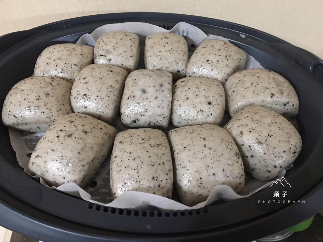 黑芝麻馒头蒸好了,很香哦