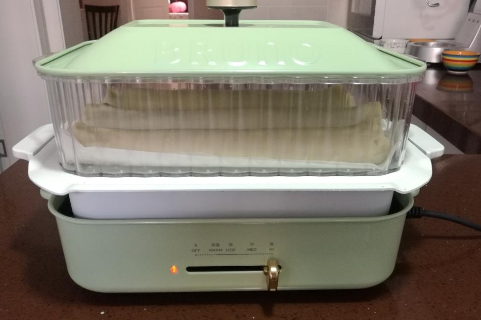 放入蒸屉(垫上屉布)。