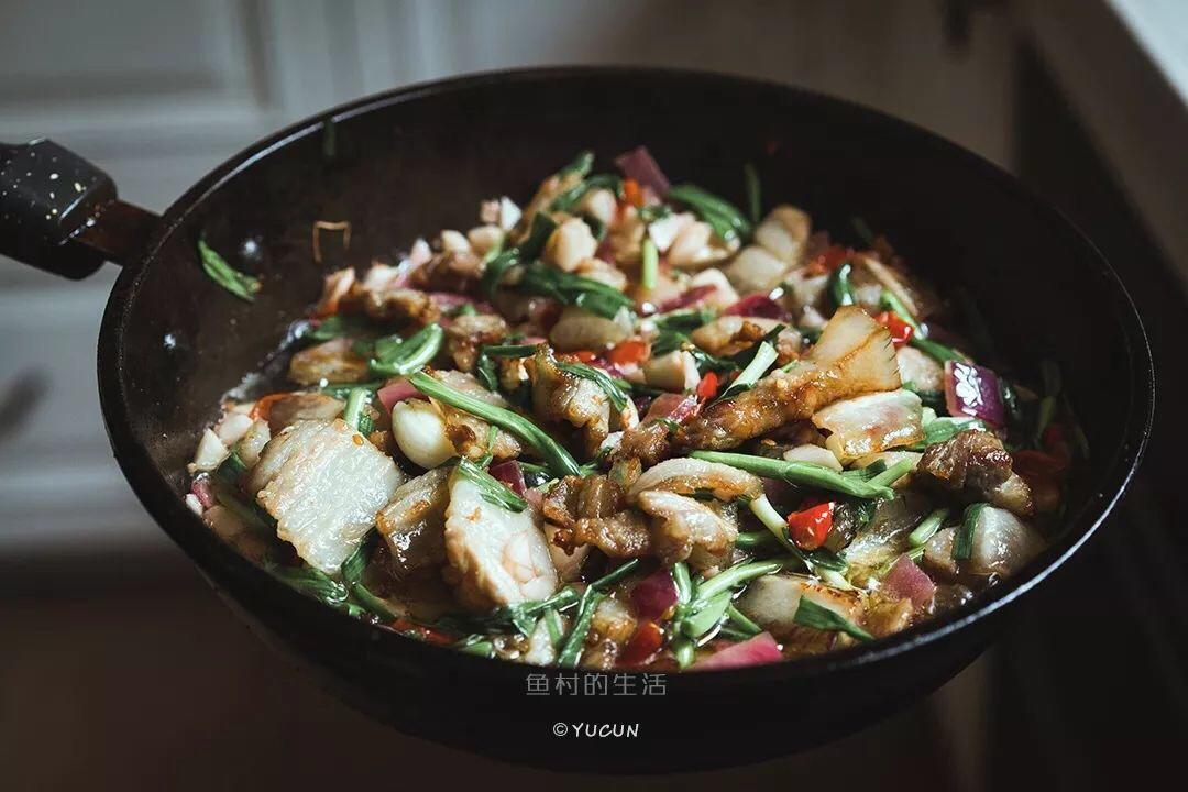 再然后加入五花肉、加入蒜苗...(蒜苗很重要,不要用其它的)