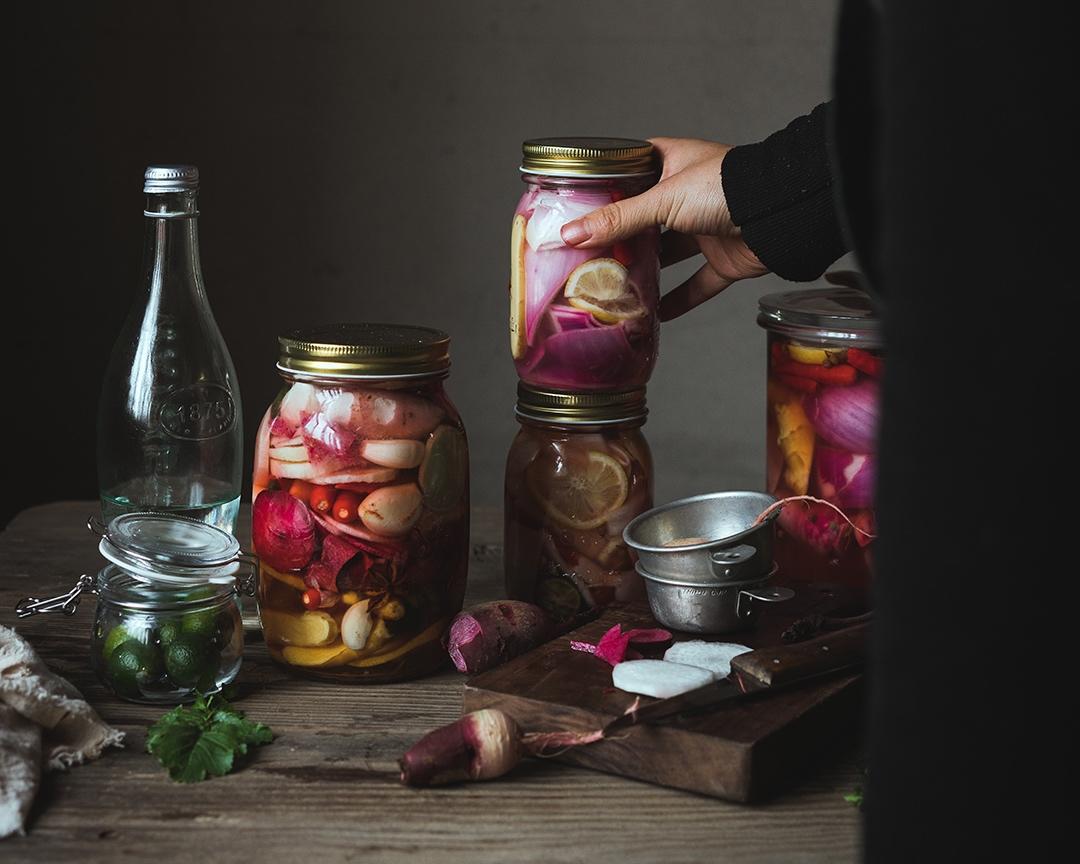 七七八八的材料准备好放入瓶罐子里,然后加入纯净水,等个2-3天就够了!没有那么多讲究,快速能吃,还可以配两碗饭就够了!