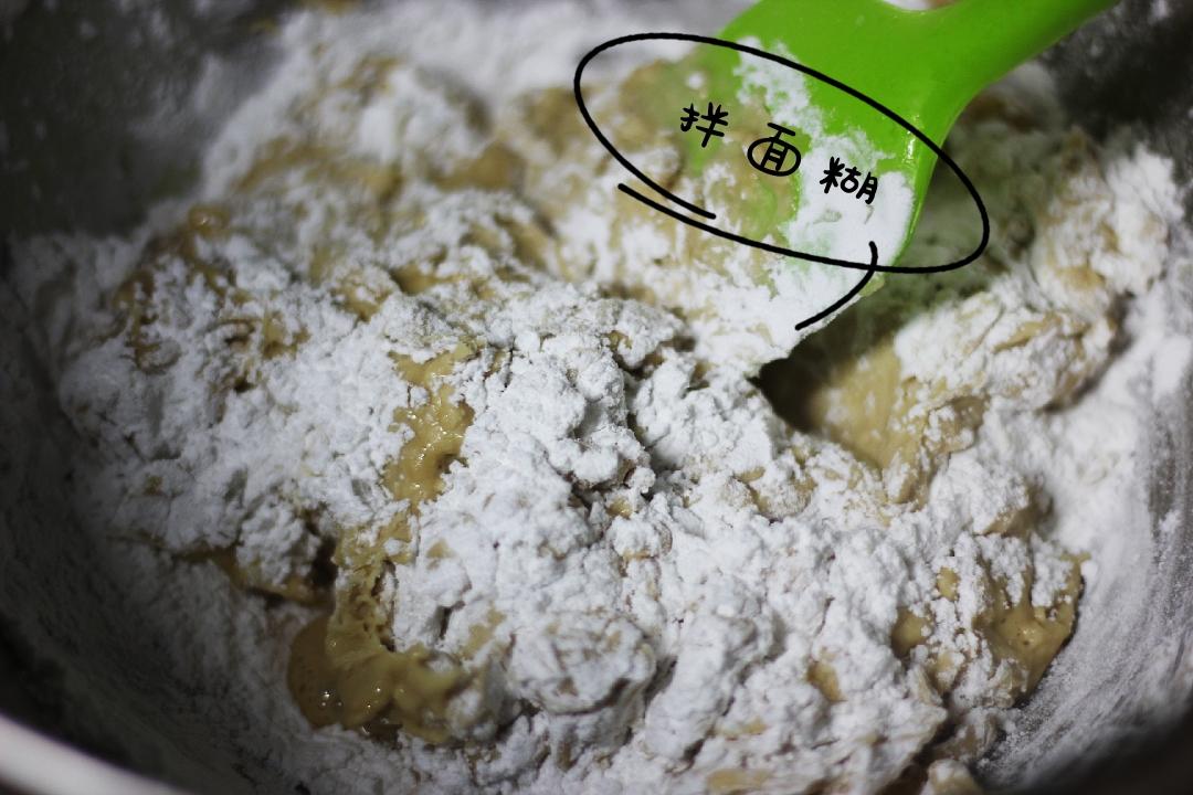 2.分多次加粳米粉,可开着小火快速搅拌面粉,必须把粳米粉完全混合均匀不要有颗粒,(不要一次性加入粳米粉,否则会粘糊到怀疑人生,别问我怎么知道😂😂)
