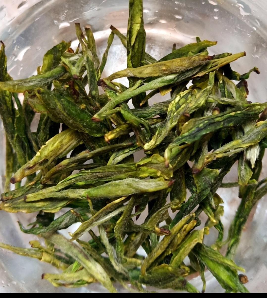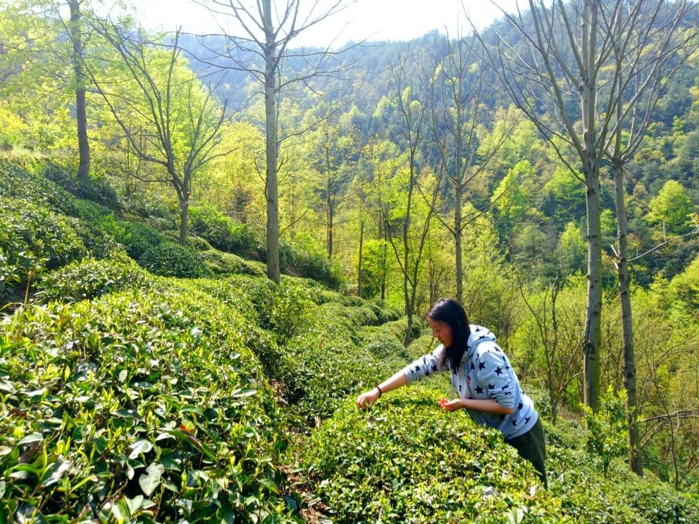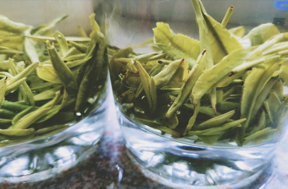 采茶。采青,采摘嫩叶,一片叶为一芯一叶,两片叶为一芯两叶。