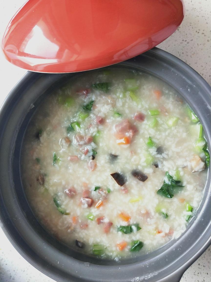 最后喜欢鸡精什么调料的酌情添加,我家有宝宝,我很少吃这些,只是炒菜时加点五香粉。这时菜和米粥味道已充分融合,不用加其他调料,粥的味道也很浓郁,开吃吧~