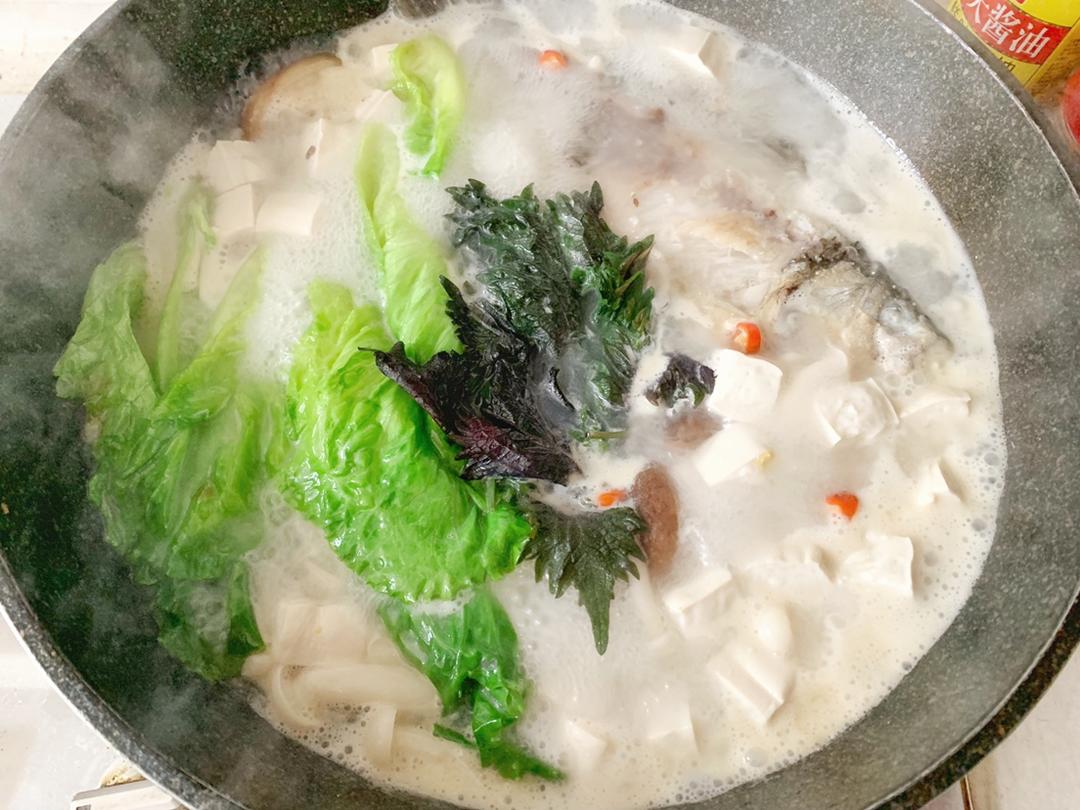最后就是加紫苏和调料啦!煮汤小秘诀就是加一点白胡椒,口感真的会变好!小米椒和蒜瓣我是在加配料那一步就加了的,因为我爱吃软塌塌的哈哈哈哈哈,而且小米椒多煮一会辣味能够更好的融进汤里面。