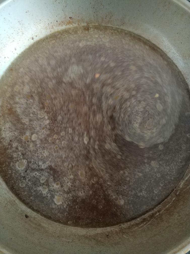 锅不要洗,直接加水烧开下面。 今天这纹路飘得很有艺术,像不像梵·高的风格?_(:з)∠)_