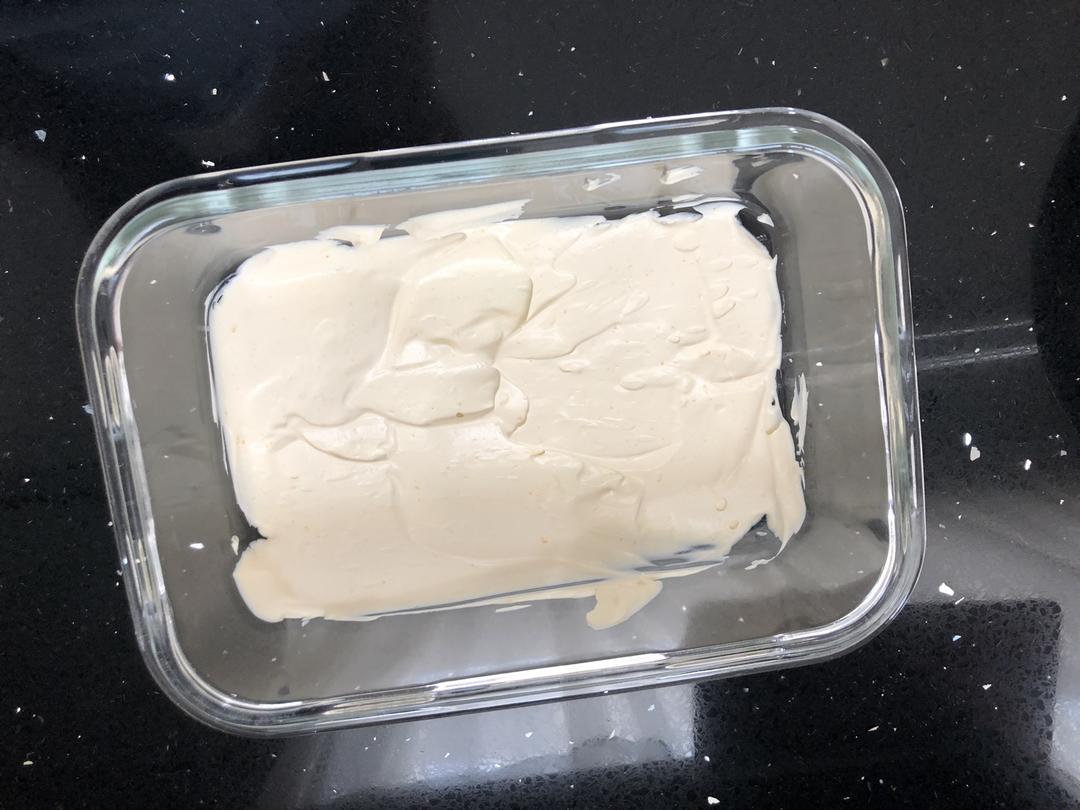 容器底部铺一层薄的奶酪糊打底