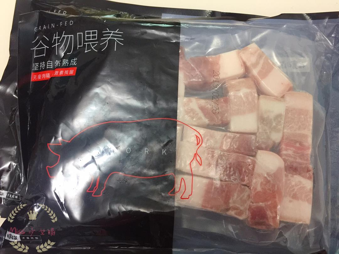 精选优质五花肉(块),尽量选择层次分明(五花三层)、脂肪部分坚实、细腻的。皮上多余的毛一定要刮净,清水洗净沥水备用。