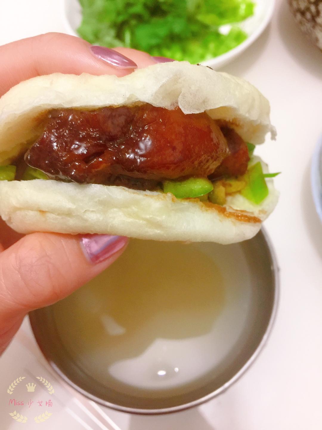 晚饭——米饭🍚+红烧肉🥘!早餐——白粥🍵+肉夹馍🥯!每天都要做个幸福的吃货!😘
