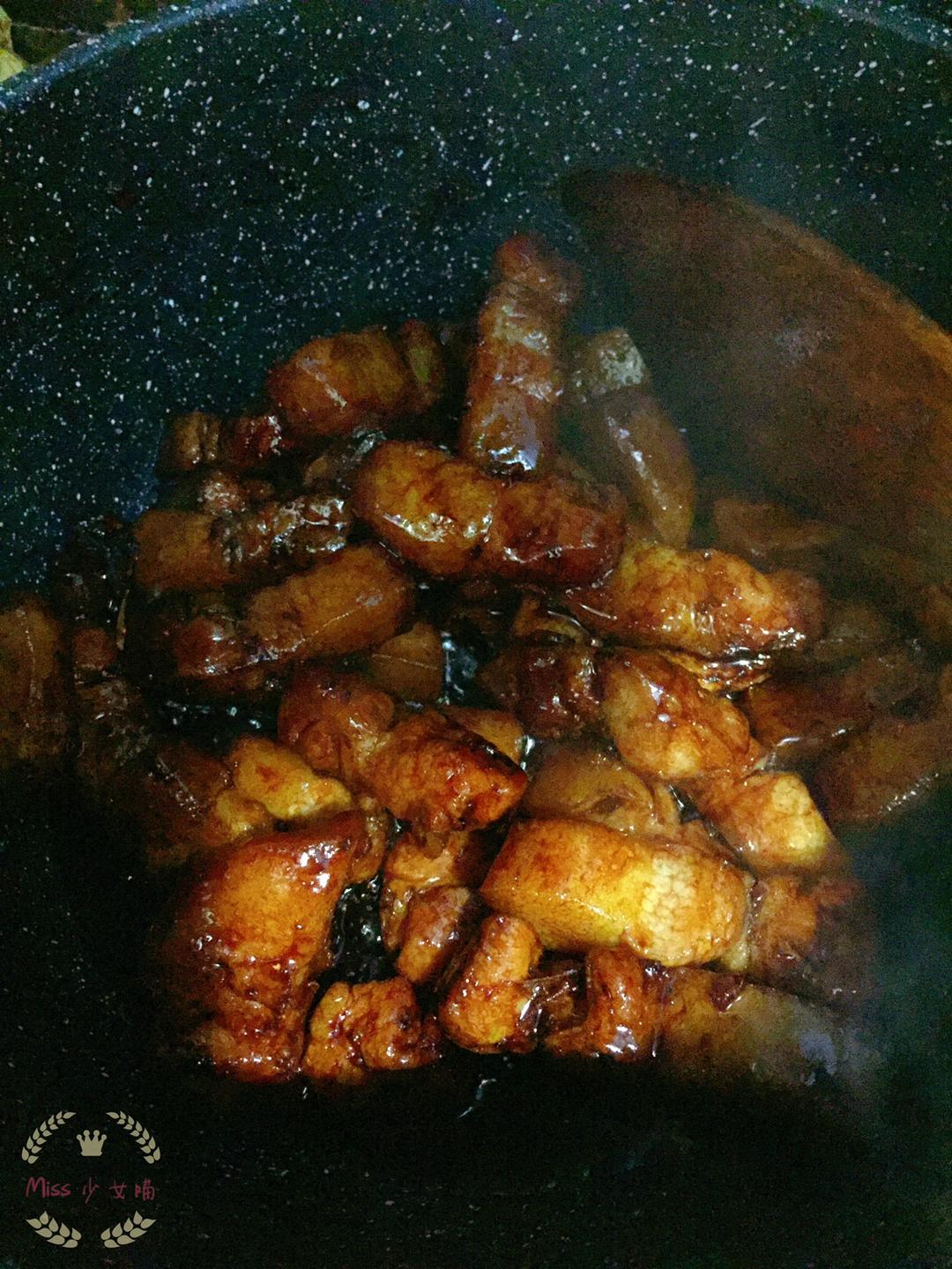 大重新调整至大火🔥翻炒均匀后加入足量热水♨(没过肉即可),烧开后加盖转小火🔥焖至软烂。