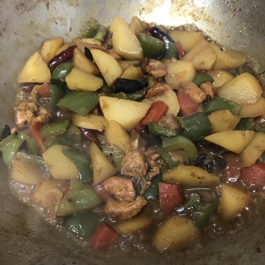 装盘。色香味俱全的大盘鸡就做好啦。