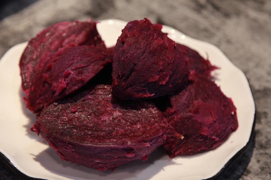 紫薯蒸熟,剥皮,晾凉备用